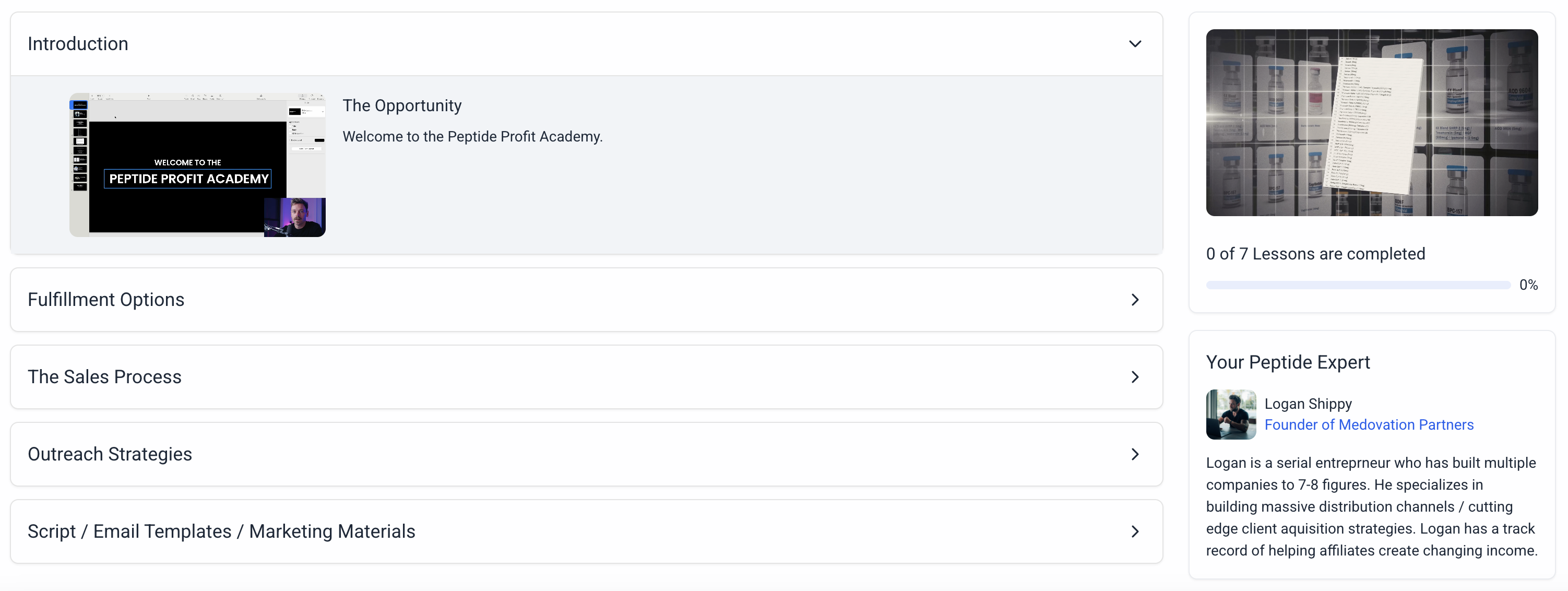 After helping dozens of clinics reduce their costs, expand their peptide options, and win, he had a realization: his success could be duplicated if he built an education system. That idea became The Peptide Profit Academy — an online course designed to teach everyday people exactly how to tap into peptides and create an additional stream of income.